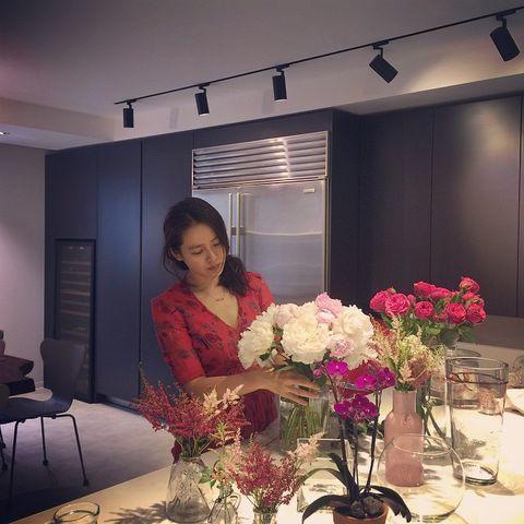 平日里,還熱愛(ài)插花,時(shí)不時(shí)在ins上曬出自己的插花作品,情趣十足。