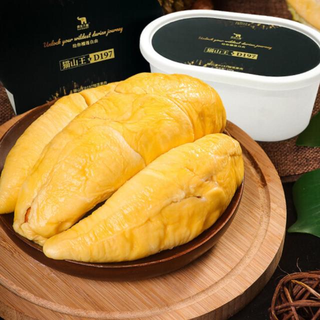 瘋克大象的貓山王冷凍果肉250g/盒售價120元左右,使用類似冰淇淋的盒子包裝,稍微解凍之后可以像吃冰淇淋一樣用勺子挖取果肉食用。相比于貓山王果肉,250g一盒的金枕榴蓮果肉更劃算,售價80元左右。