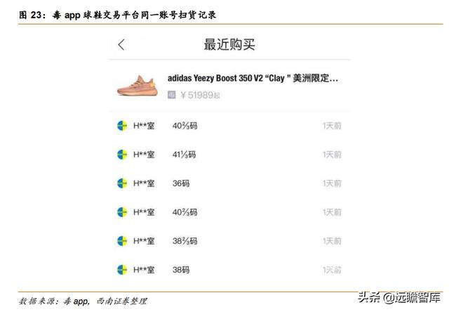 平臺解決了球鞋假貨泛濫的問題,并且球鞋款式非常豐富。相比私域交易,平臺交易渠道購買的球鞋售價相對更高,且因增加球鞋鑒定流程導致收貨速度更慢。私域交易渠道風險雖然高,但在與賣家建立良好信任基礎后,通常顧客會選擇價格更便宜且收貨速度更快的私欲交易渠道購買球鞋。(報告來源:遠瞻智庫)