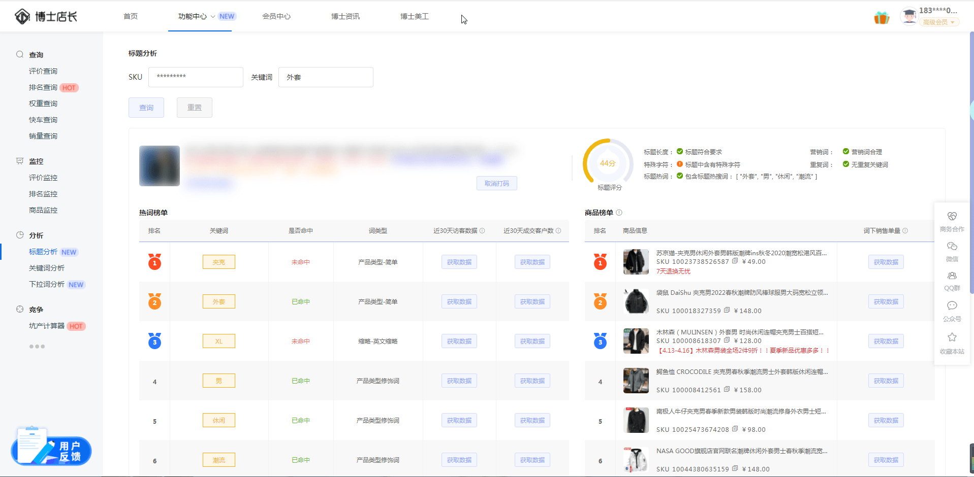 如果不知道哪個(gè)關(guān)鍵詞的流量大或者想要提煉更優(yōu)質(zhì)的關(guān)鍵詞可以在博士店長(zhǎng)“分析”板塊中的“關(guān)鍵詞分析”功能內(nèi)進(jìn)行搜索,幫助你提煉出一個(gè)更加優(yōu)質(zhì)的標(biāo)題。