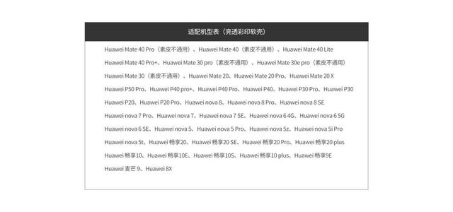 在適配機型方面,有華為 Mate20/30/40 系列、華為 P30/40/50 系列、華為 Nova7/8 系列以及華為暢享、麥芒系列等手機。