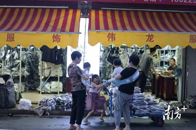 揭陽市軍埔村總是“醒”得很晚,下午3點(diǎn)左右,原本安靜的主干道才會逐漸熱鬧起來,載著一包包貨物的摩托車、三輪車乃至私家車、小貨車,將并不寬敞的道路擠得滿滿當(dāng)當(dāng)。街道兩邊的檔口大門敞開著,工人們在堆放衣服的貨架前忙碌,將下單的商品分揀打包,等待著客戶前來自取。