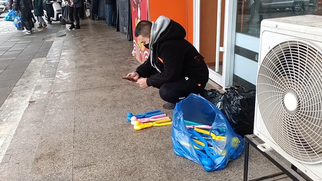 在市場(chǎng)內(nèi)的玩具批發(fā)樓層,有不少人守在一些批發(fā)小玩具的店鋪門前,等待貨源,店老板則不停地打電話催促送貨。每當(dāng)一箱雪球夾被送來,守在門前的人就會(huì)立即搶購。其中,有的人是批發(fā)轉(zhuǎn)賣,有的是買給自家孩子。