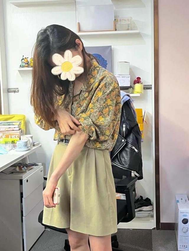 另一位辣媽種草號(@每天只種一棵草)的好白用花襯衫搭配同色系的百慕大短褲,濃濃的復(fù)古感。▼