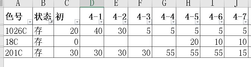 其中表3結(jié)存明細只會顯示有用料色號的庫存,對于沒有用料的色號就顯示為0了,此時需要再加一層判斷。
