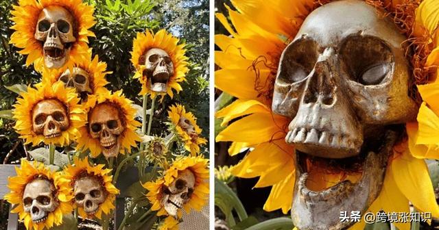 富含創(chuàng)意的向日葵頭骨非常適合用來裝飾萬圣節(jié)。令人毛骨悚然而不失趣味,而且不會過度血腥。