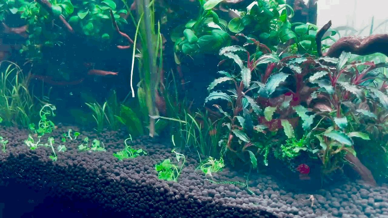 在缸的后景區(qū)域種上大水蘭。它葉型細長,能長到水面,水中的姿態(tài)隨水流飄動,煞是好看。大水蘭比較好養(yǎng),走莖,生長速度快,適應能力強。作為陰性草缸的背景草是個不錯的選擇。