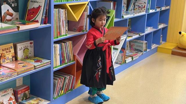在一次國風(fēng)主題活動(dòng)中,一位小朋友身穿漢服誦讀論語