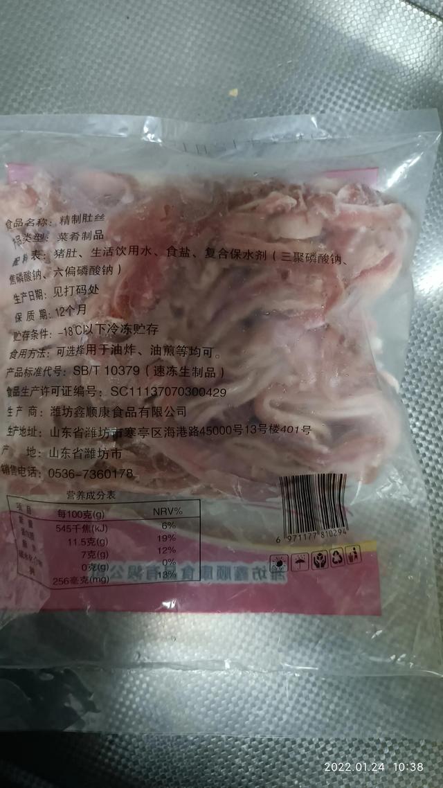 經(jīng)常在網(wǎng)上訂菜,美團(tuán)、淘菜菜、興盛優(yōu)選及多多買菜等。最近年底了,想著買點(diǎn)豬肚做菜。豬肚吃過但鮮豬肚真的沒有清理過。在多多買菜上看到有半熟的豬肚絲(秒殺),29.9元/1Kg。平臺(tái)圖也好看,但平臺(tái)沒有物品的實(shí)拍圖。想著對(duì)大平臺(tái)的信任,還是下了單。實(shí)付29.29元(有優(yōu)惠)。在APP平臺(tái)下單的。過了些時(shí)間又打開平臺(tái),出現(xiàn)自動(dòng)推送的豬肚絲,點(diǎn)開后看了評(píng)價(jià),才知道了這肚絲可能是假的,是豬食管或別的什么東西。不放心,申請(qǐng)退貨卻退不了。