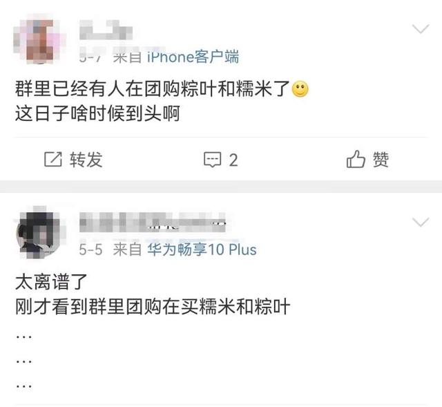 隨著端午季的臨近,一些居民發(fā)現(xiàn)團(tuán)購各式各樣的粽子已不稀奇,群里竟然開始團(tuán)購起了粽葉、糯米,購買者居然還不少,看來準(zhǔn)備在家中大顯身手自包自煮DIY了。