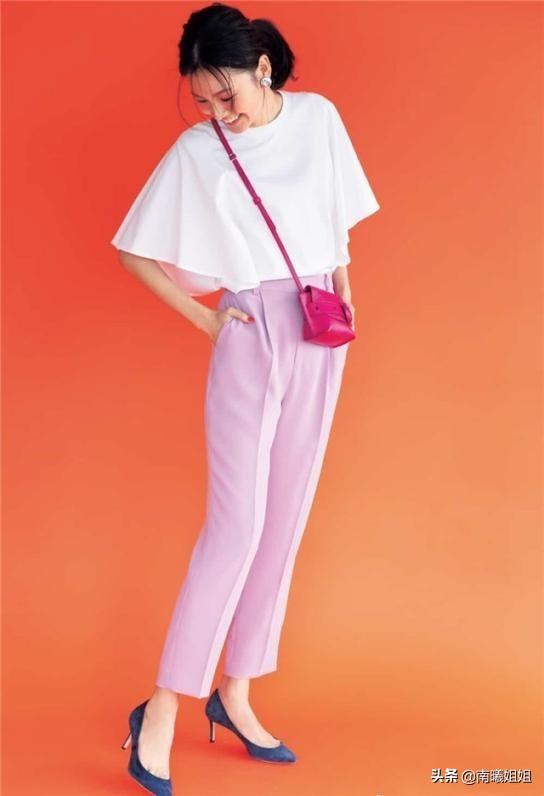 T恤搭配披肩的新穎穿法,可以增加造型的層次感,顯得吸睛而又時髦力MAX。搭配紫玫瑰色闊腿褲,高雅又清新。足下的細帶涼鞋輕松化解上半身的臃腫感,放大了造型的精致感,讓整體穿搭顯得貴氣十足。
