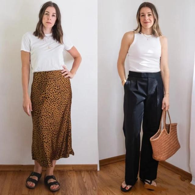 像基礎色系的純棉T恤、純棉背心,米色、藍色直筒牛仔褲,或者黑色高腰闊腿褲、卡其色高腰褲,這些都值得大家入手,出門上班都能穿。