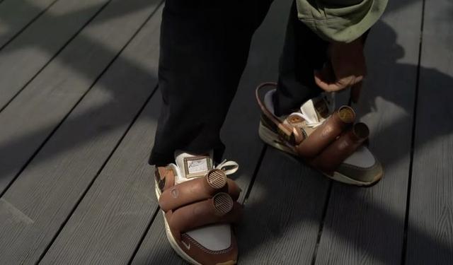 除了外形吸睛十足,這款外骨骼的功能也同樣別出心裁。位于鞋面上方的部分,頂部有兩個(gè)體積迷你的渦輪機(jī),由微型馬達(dá)驅(qū)動(dòng)。穿上裝了這款外骨骼的「Air Max 1」,按下側(cè)邊的按鈕,就能感受由它帶來(lái)的圍繞在鞋子與腳部周?chē)臍饬鳌?/span>