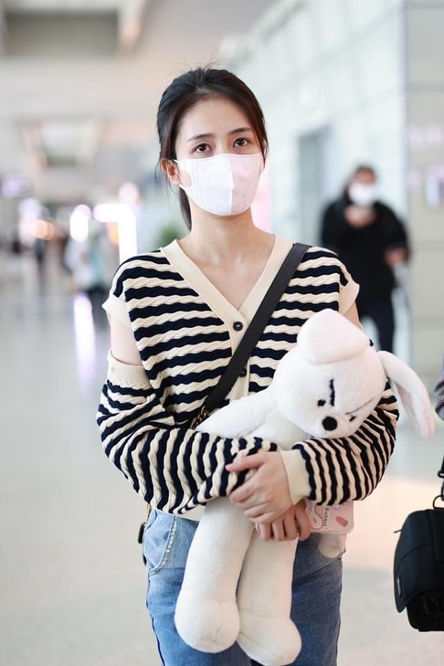 前開扣的V領(lǐng)設(shè)計可以讓脖頸處更顯修長有氣質(zhì)。不得不說生活中的白鹿挺有少女感,針織衫肩膀開個口,看著挺顯瘦的。