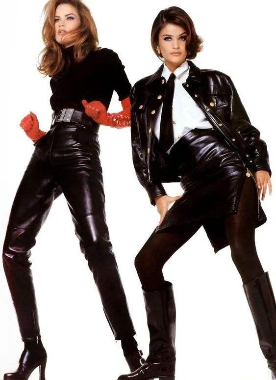 但上世紀(jì)八九十年代,又恰好碰上女性解放最火熱的時(shí)候,拋掉裙裝的女孩們,反而愛上了舒適自在的皮衣皮褲,她們穿上男孩子的各種衣服,把反傳統(tǒng)的衣著,視作一種對(duì)傳統(tǒng)的挑畔。