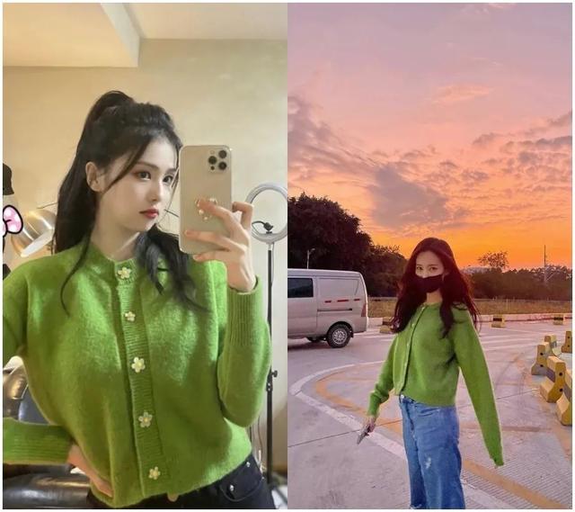 短款綠針織衫有多紅呢?像紅貝貝最近在忙著回歸,瑟琪和irene兩個人不約而同都穿上了綠色的短開衫。而要說到綠開衫的最佳搭配,那必然是走簡約風,用白T加上牛仔褲,清清爽爽的,無論什么時候都好看。