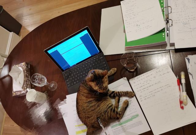 去年,英國(guó)新冠封城,出不了門,我每天七八點(diǎn)起床,做題到晚上,除了4月份去看過一次櫻花,和別人出去吃過一次飯以外,都在干活。那段時(shí)間我覺得好開心。就像“桶中之腦”一樣,沒有人評(píng)判你的長(zhǎng)相,你就只是在線上和人討論數(shù)學(xué),甚至不用出門。我總結(jié)自己是一瓶拉菲一只貓,一道數(shù)學(xué)算一天。