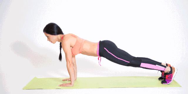 1、俯身雙手垂直撐地,手掌比肩膀稍寬,雙腳與髖同寬。