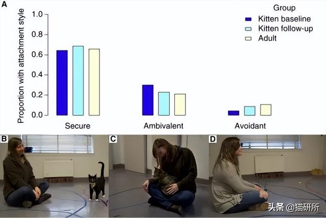 且超過一半(64.3%)的貓咪是安全型依戀,即在看到主人的第一時(shí)間就奔向主人,積極地尋求撫摸,并在團(tuán)聚和游戲中得到安慰。